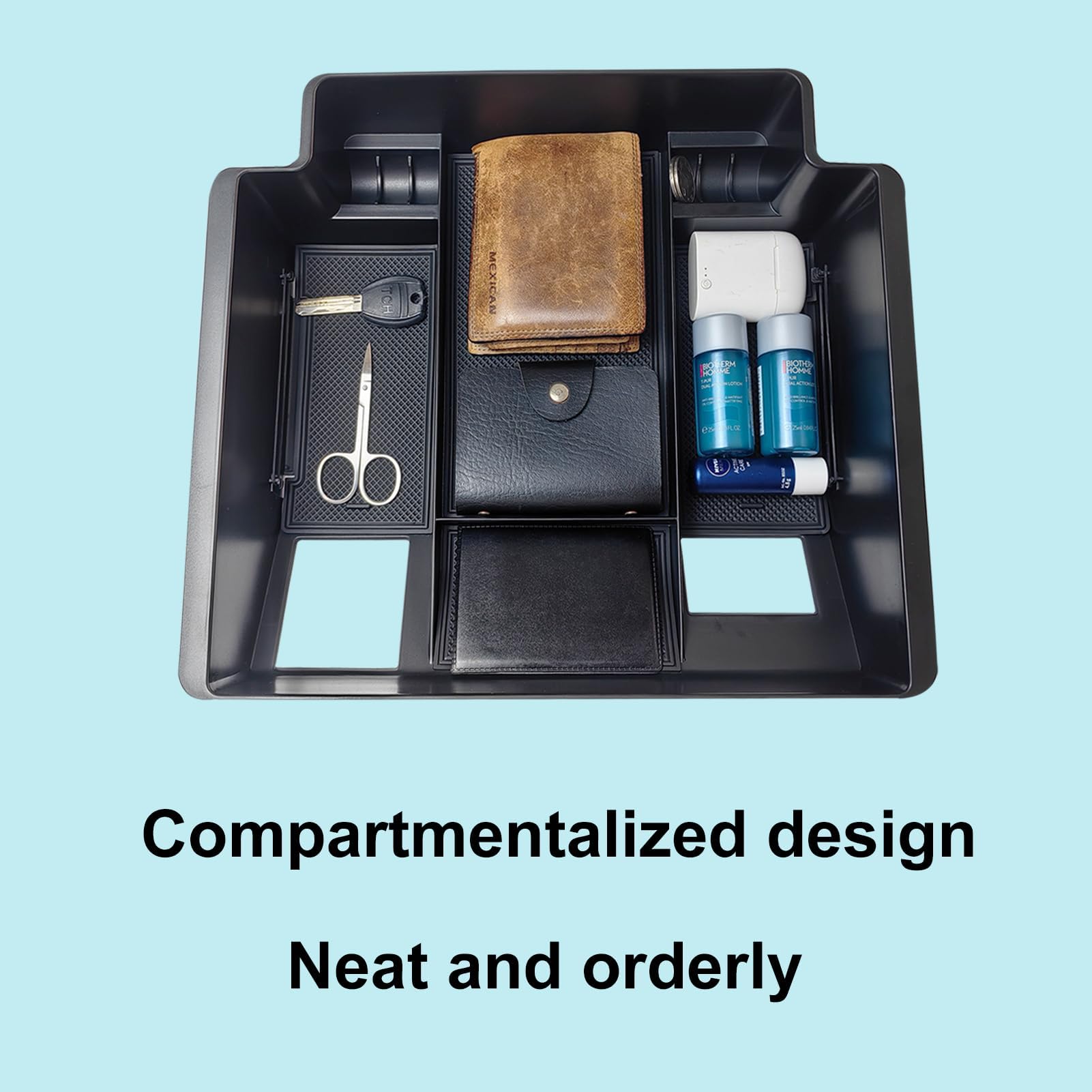 ?Compatible Vehicle Models?Full-size center console organizer Tray Compatible with 2023 2024 Chevrolet Silverado/GMC Sierra 1500 and 2022 Refreshed Silverado/Sierra 1500. Fits 2024 2025 Silverado/Sierra 2500HD 3500HD models with wireless charging, including AT4X, Denali Ultimate, ZR2, LT Trail Boss. (Full console w/bucket seats ONLY). ?Incompatible vehicles? Not fit 2023 Silverado/Sierra 2500HD 3500HD, 2014-2022 Silverado/Sierra, also not suitable for split folding armrest seat consoles. ?Custom Design?Based on the original center console design, it does not interfere with the normal use of the USB port, and the non-slip rubber mat on the tray reduces noise when items are moved. ?Material? Made of ABS plastic, strong enough hardness, not easy to deform. ?Neat and Orderly?You can keep your infrequently used items on the bottom and your frequently used items such as charging cables, keys, wallet, etc. on the organizer tray. The entire center console is well organized and easy to access.