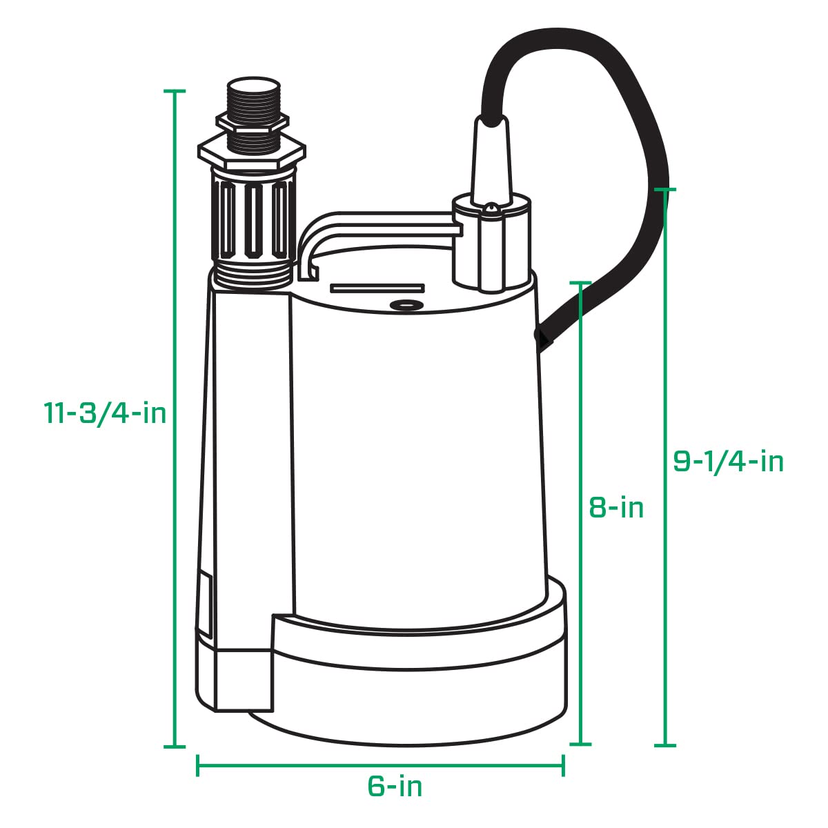 1-in male discharge with 1-1/4-in female adapter and garden hose adapter for easy hookup Pumps floor dry to 1/8-in; fits into 7-in opening 100% Factory tested. 2 year limited warranty