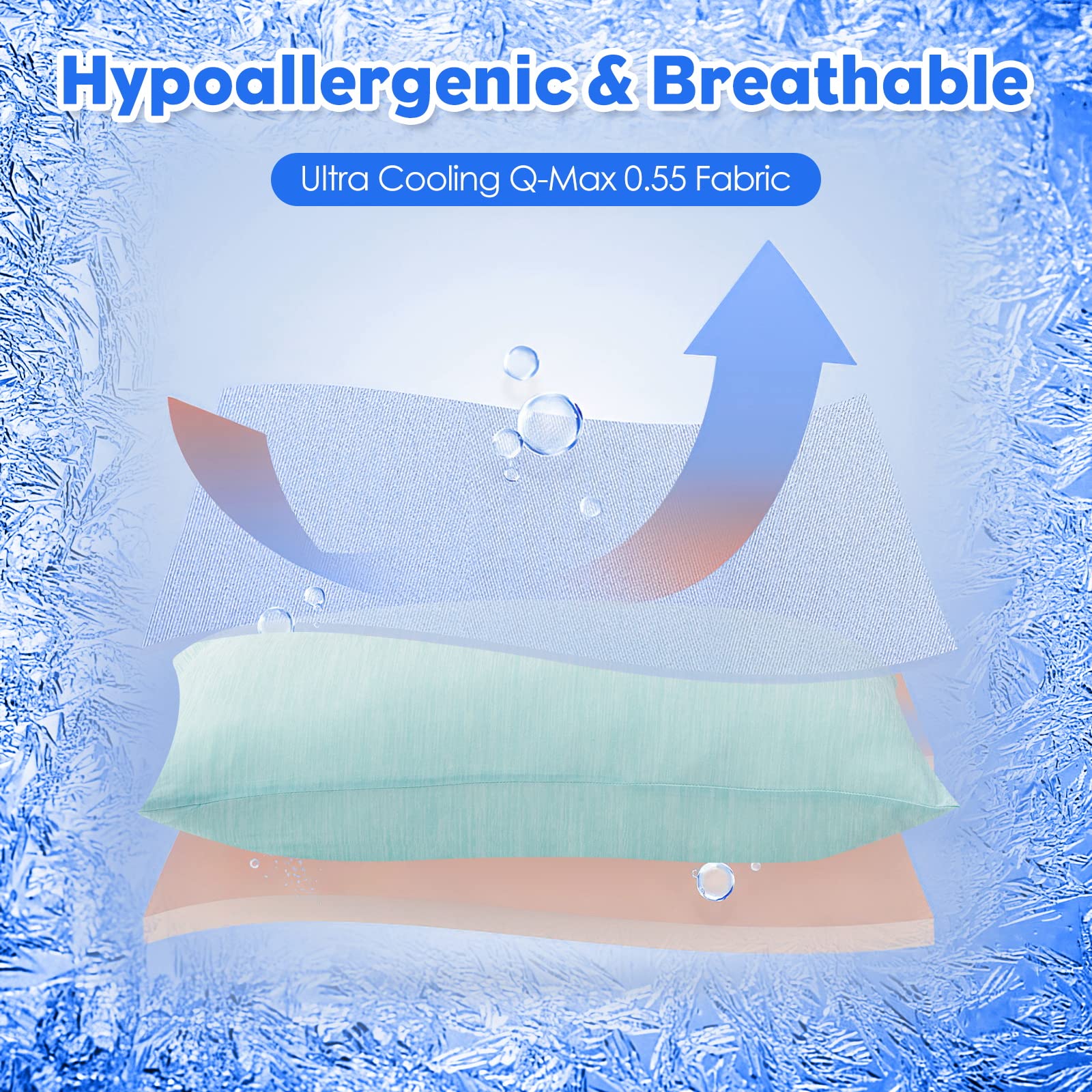YIYEA Cooling Pillow Cases for Hot Sleepers & Night Sweats - Double-Sided Arc-Chill Q-max>0.5 Technology - Ultra Soft, Hypoallergenic and Anti-Static - Pillow Cases Standard Size Set of 2, Green