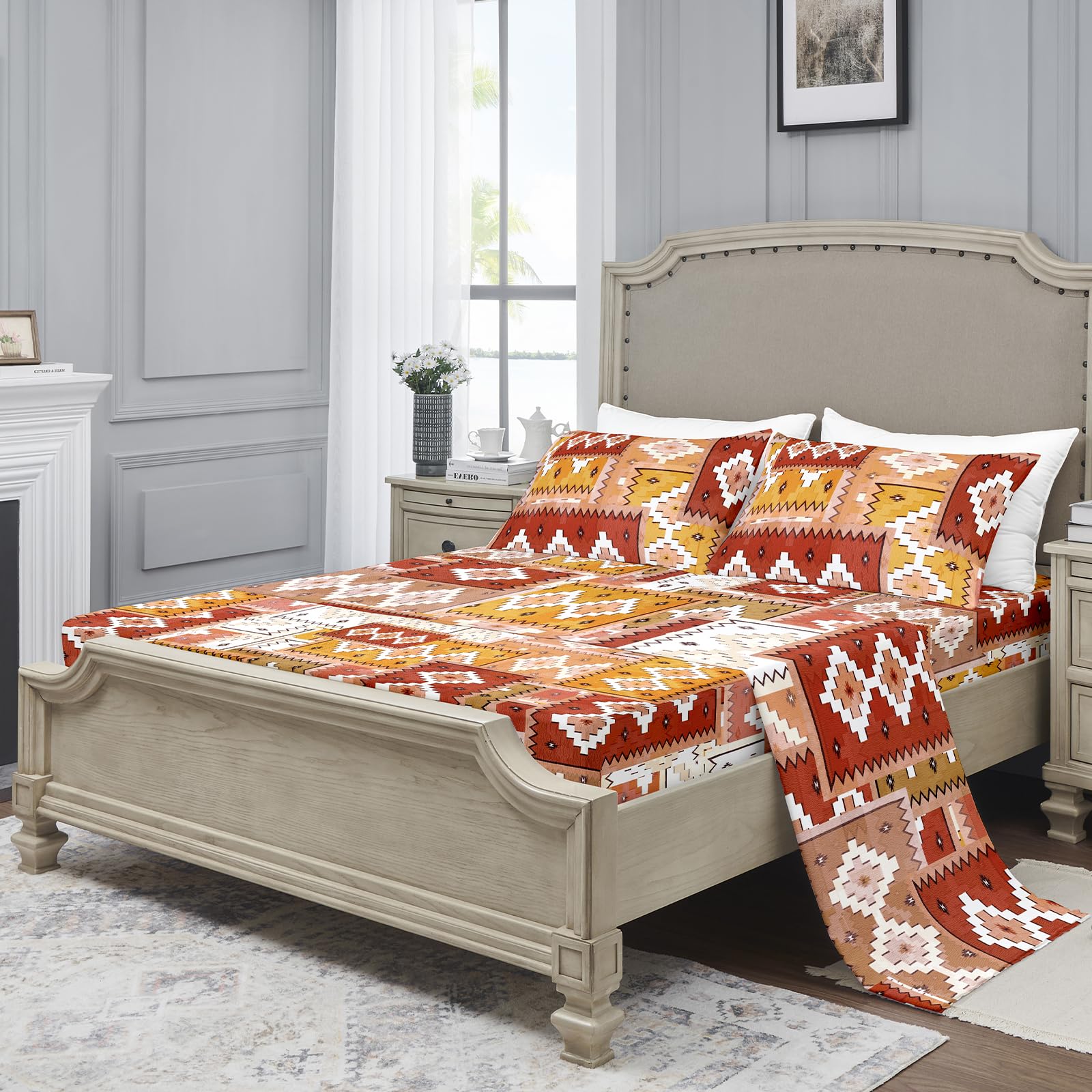 YIYEA Queen Sheets - Geometric - Luxury Double Brushed Microfiber Sheet Set- Lightweight Breathable Cooling Bed Sheets - 16" Deep Pocket, Shrinkage, and Fade Resistant - 4 PC