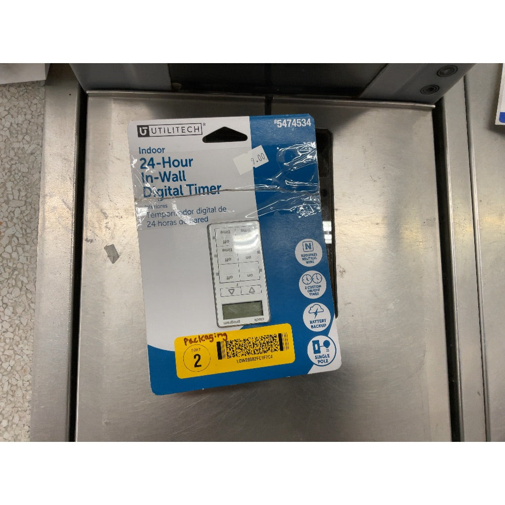 Utilitech Indoor 24-Hour In-Wall Digital Timer - Digital, Battery Backup, Single Pole