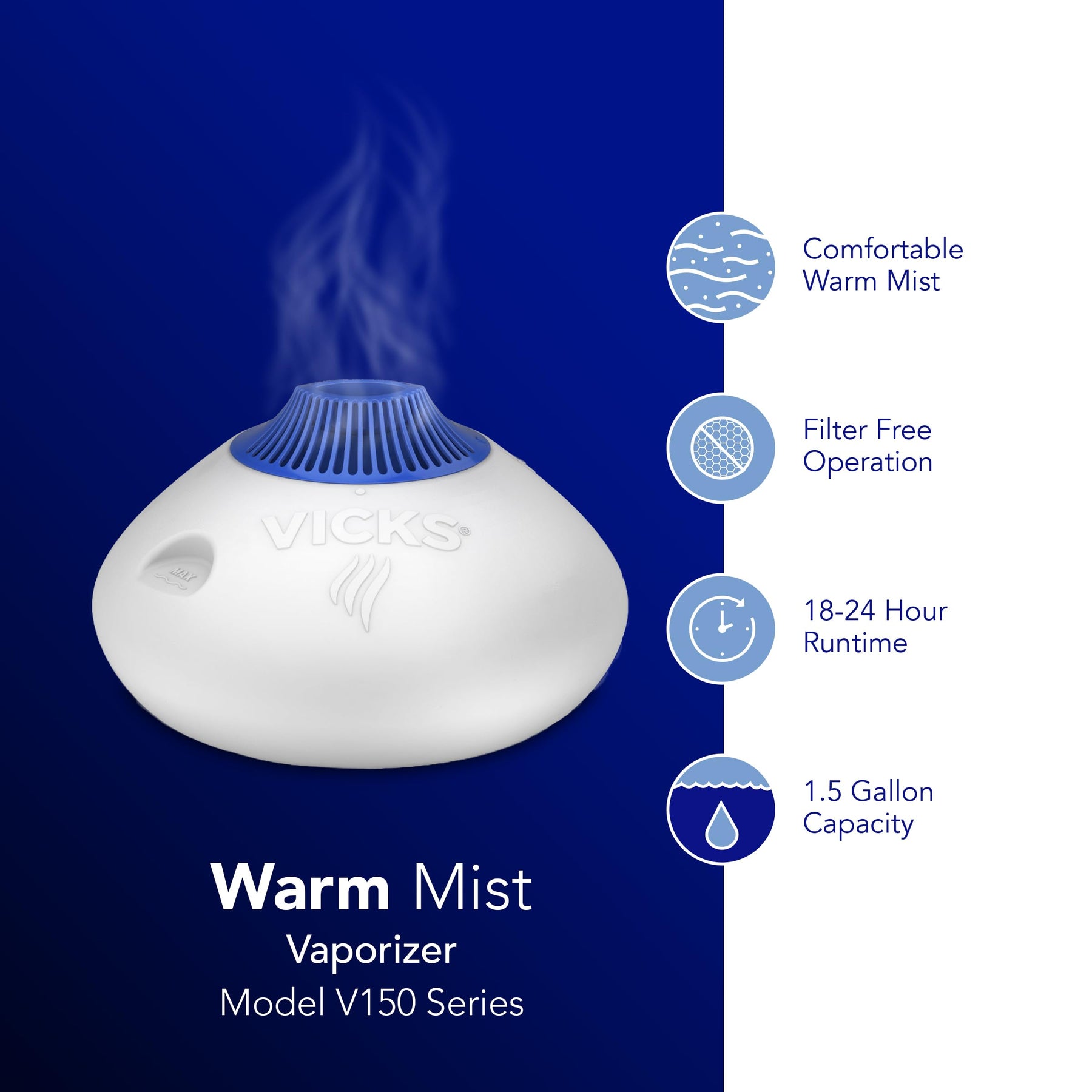 Vicks Warm Steam Vaporizer, Small to Medium Rooms, 1.5 Gallon Tank – Warm Mist Humidifier for Baby and Kids Rooms with Night Light, Works with Vicks VapoPads and VapoSteam