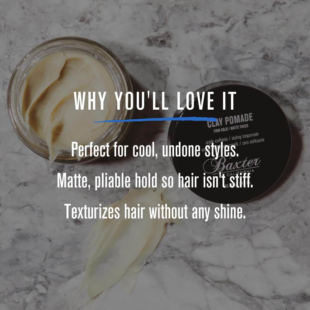 Baxter of California Clay Pomade | Firm Hold / Matte Finish | Hair Pomade for Men and Women | Perfect for Texturizing Straight or Wavy Hair | 2 Ounces