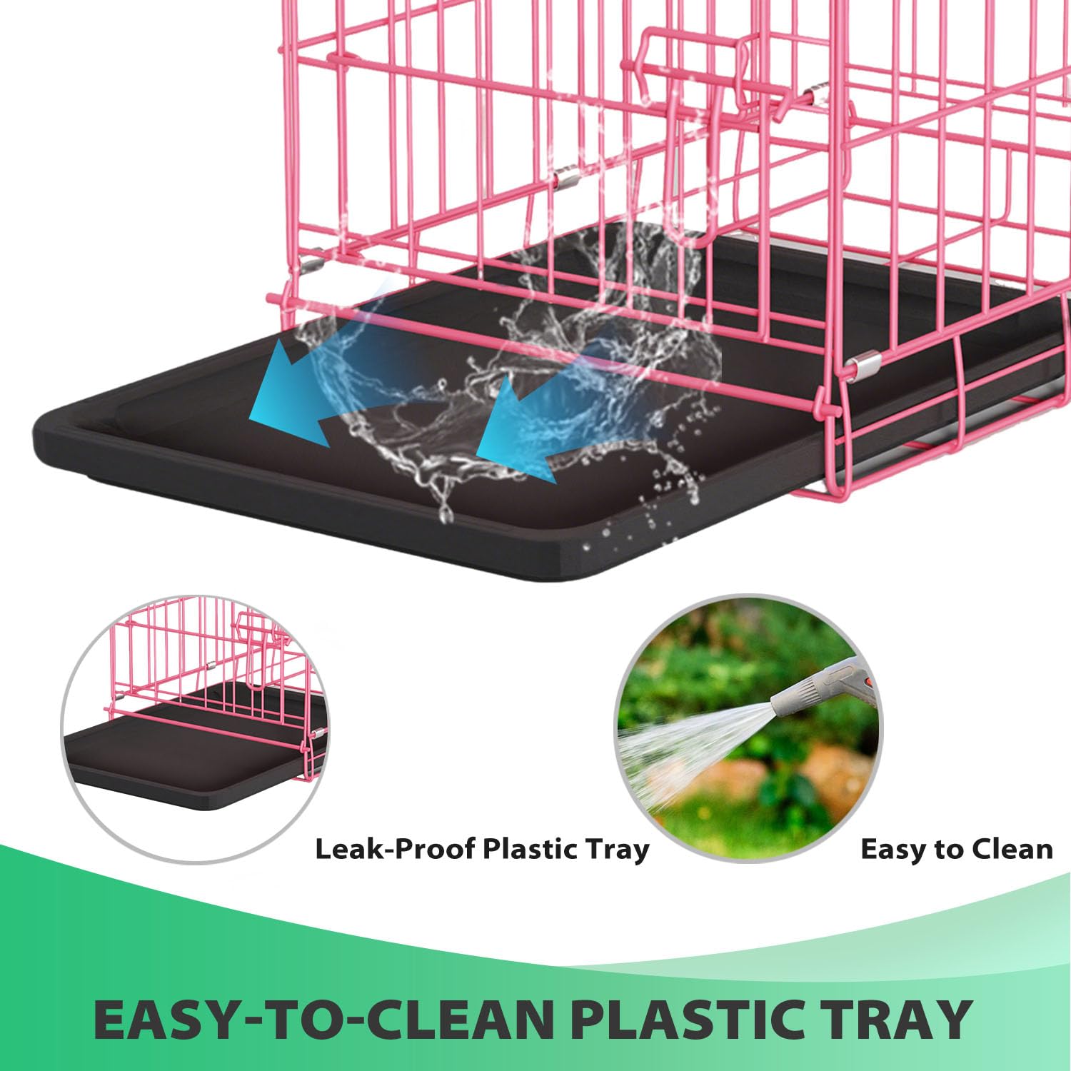• LEAKPROOF & EASY TO CLEAN: Equipped with a durable, removable ABS tray that contains messes, resists stains and odors, and makes cleaning your indoor dog kennel quick and stress-free.